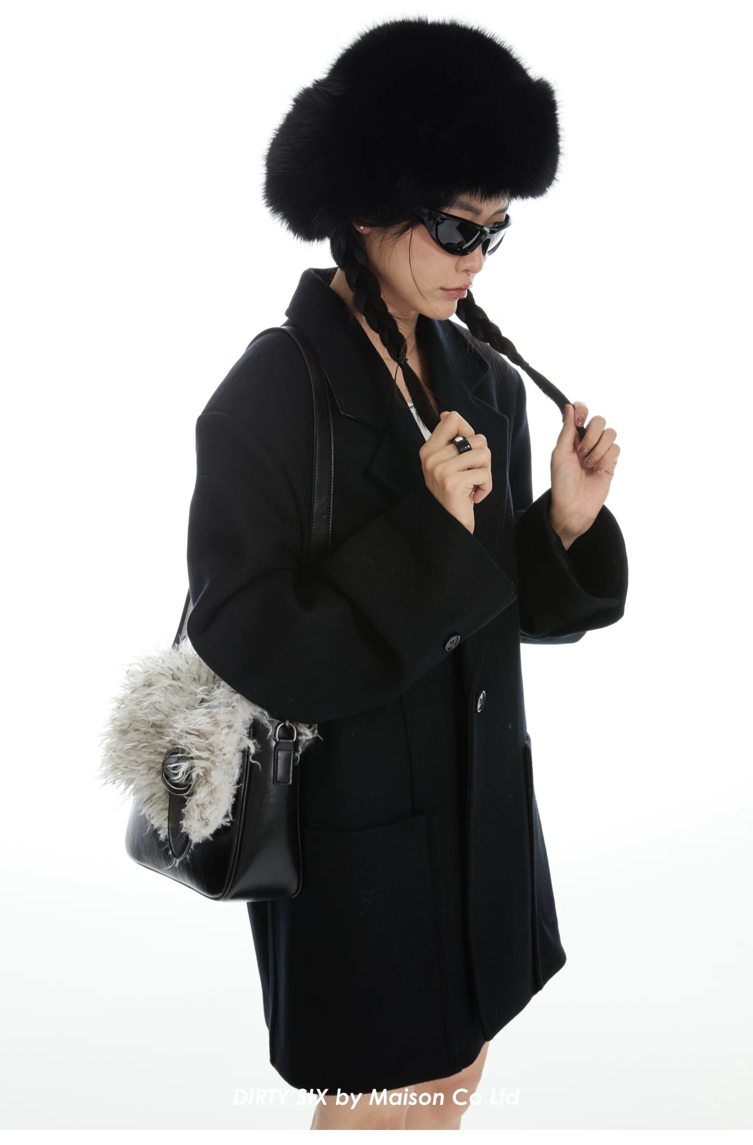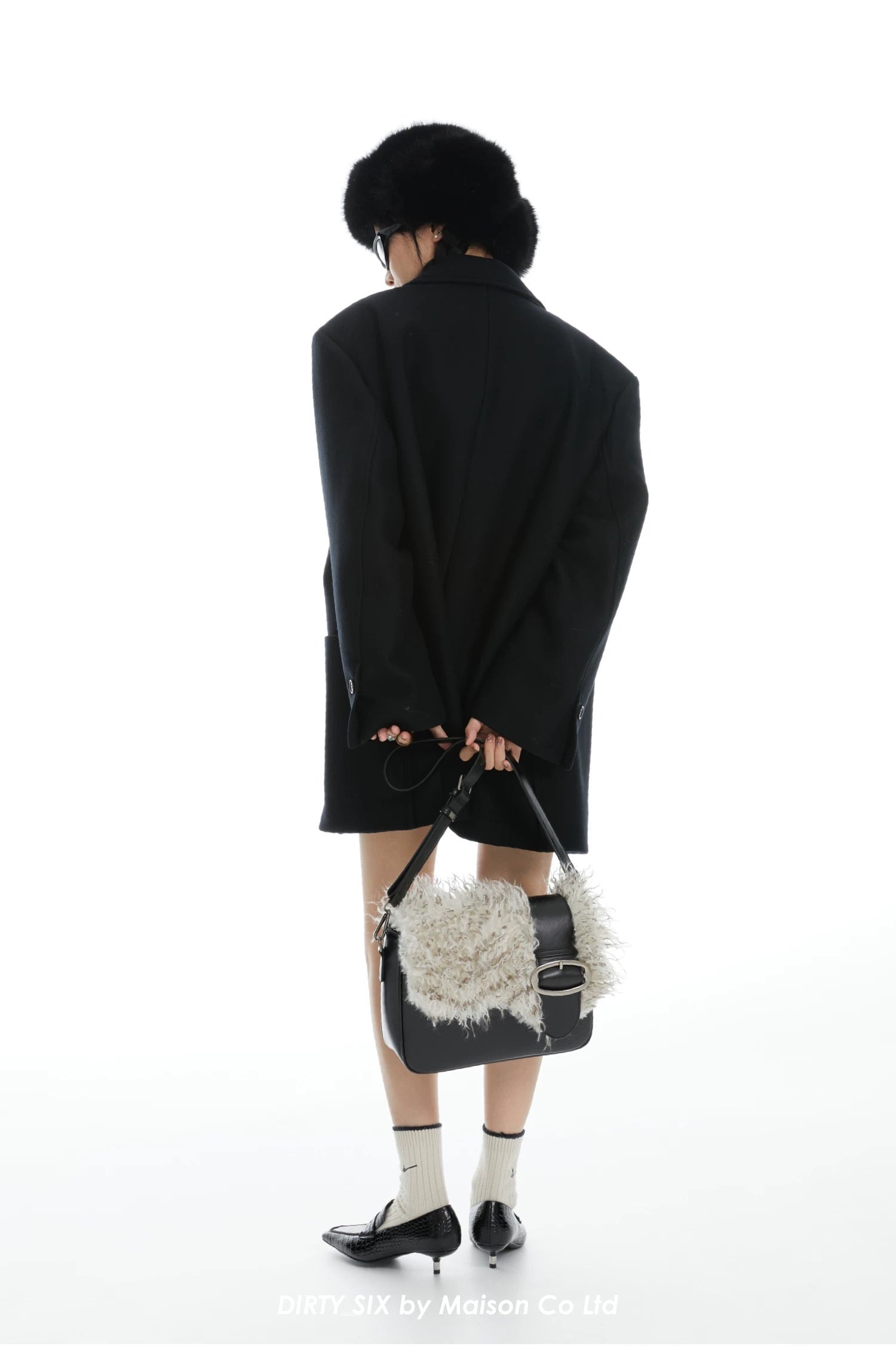 本体:牛革(二層)、織物(エコファー/羊毛調)